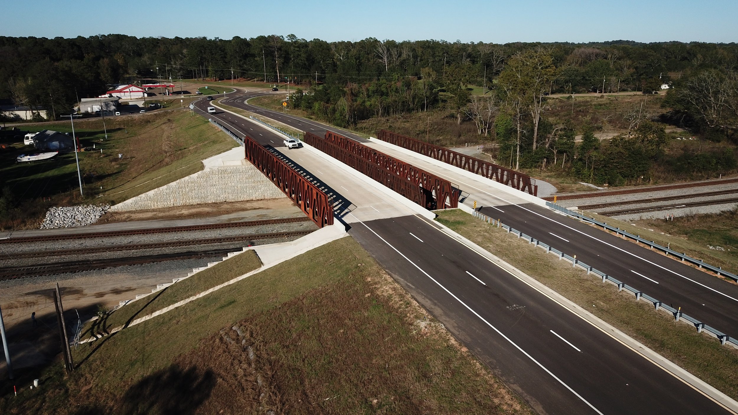The Pearl-Richland Intermodal Corridor Railroad Overpass Project addressed a long-standing issue at a busy rail crossing. Frequent train blockages disrupted traffic, limited emergency access, and slowed freight movement through one of the region’s key industrial areas. With the new overpass in place, vehicles can now travel safely and reliably between Highway 468 and U.S. Highway 49.